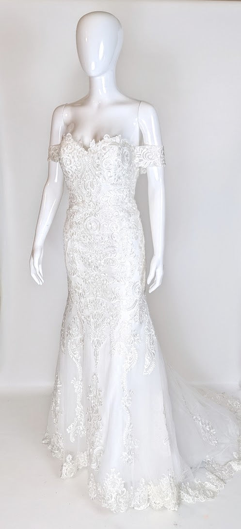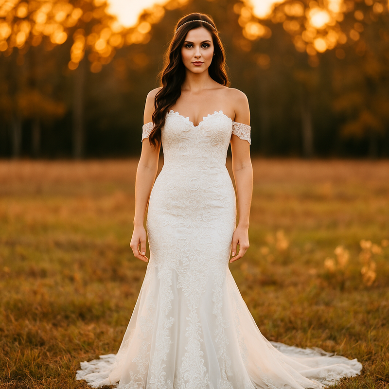 Lace Mermaid Wedding Dress with off-shoulder sleeves