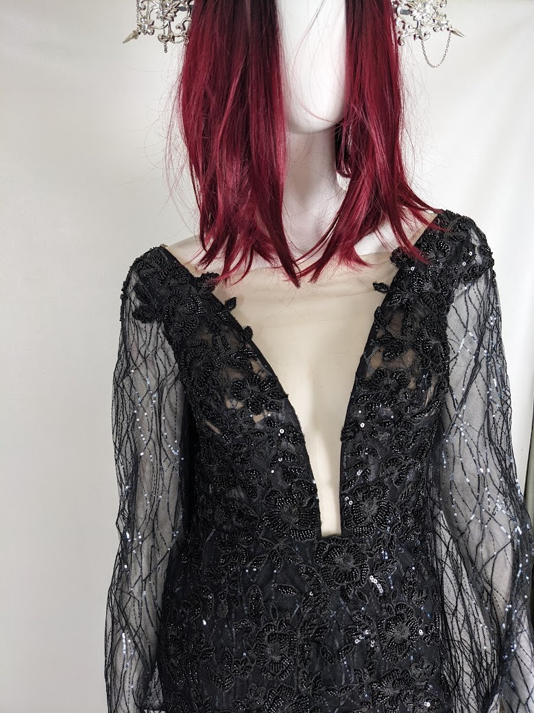 11803 Odessa: Black Champagne Lace mermaid with floral print