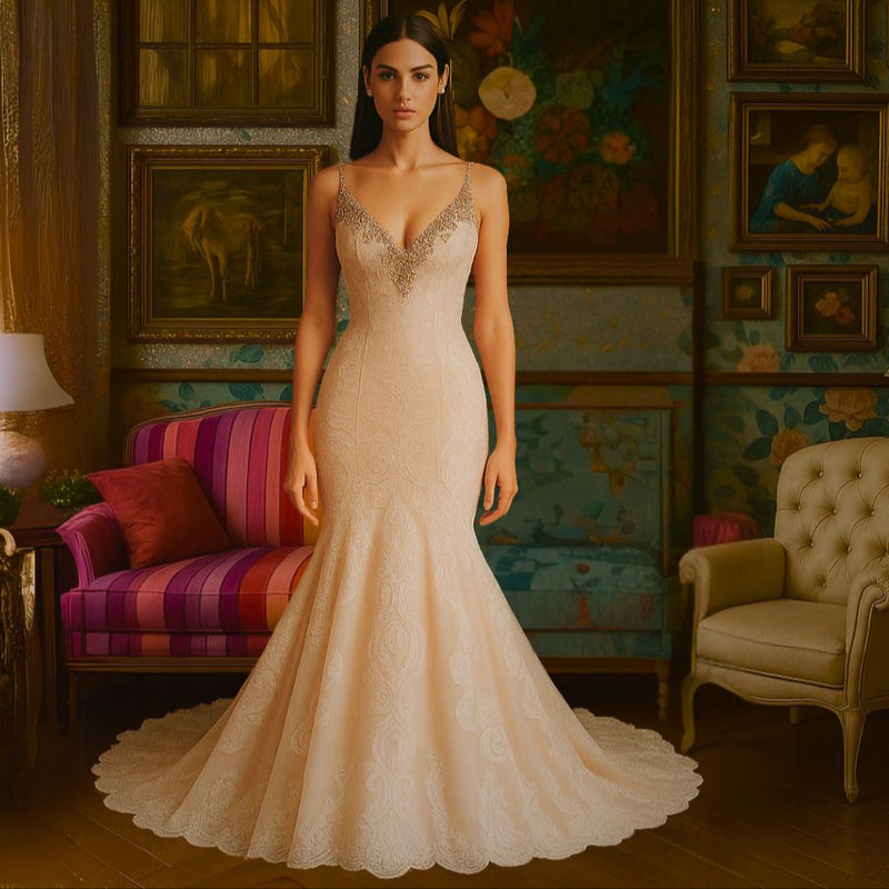 Sparkling Tulle and Lace Mermaid with Rhinestone Neckline