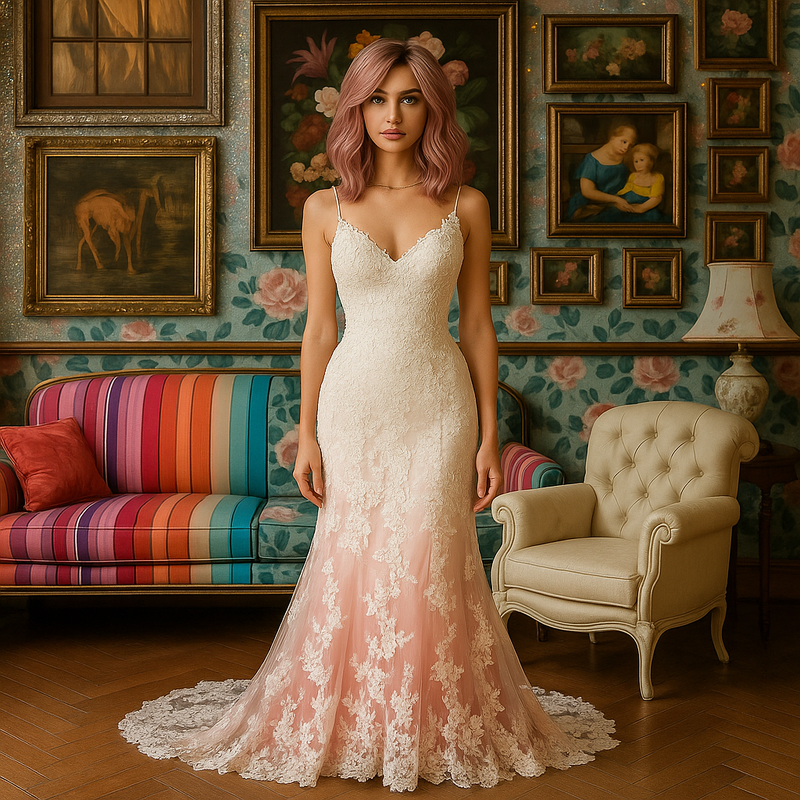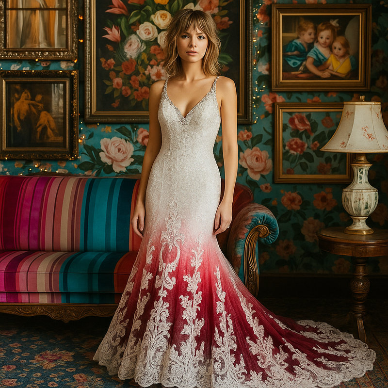 Dyed Lace V-Neck Mermaid Wedding Dress