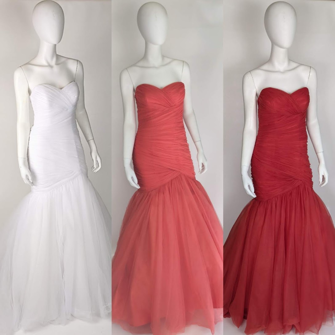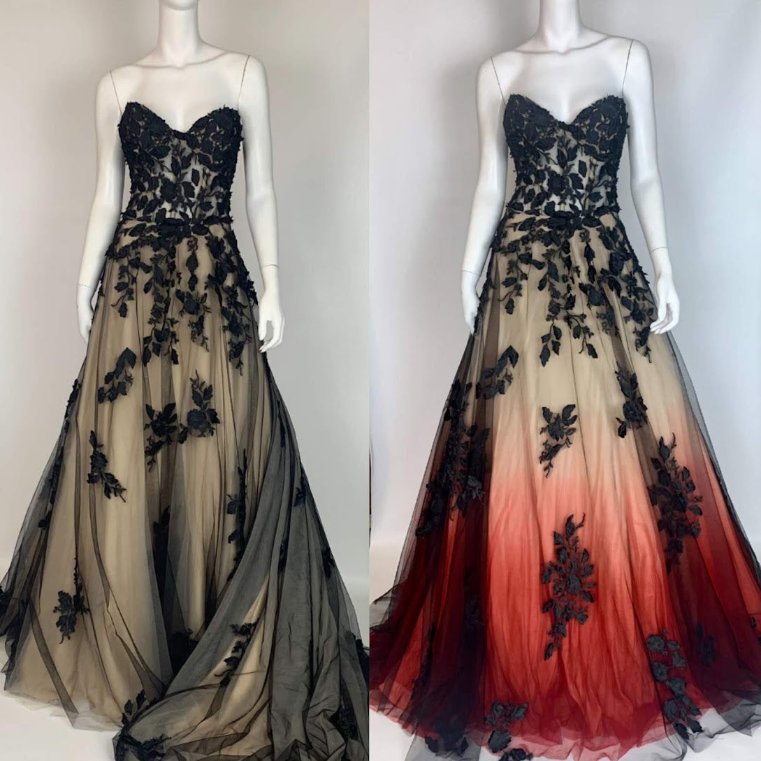 Our full collection and any bespoke custom gowns are available in any color or ombre combination. We happily serve clients who found their gown at other fine bridal retailers. Many of our customers that order dyeing services already wore their dress and are upcycling their wedding dress!