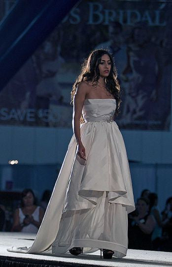 NEW VARIATION! Now available with separate underskirt to take off for the reception! Pleated tiers of taffeta enhance the clean, modern lines of the original Jacqueline.